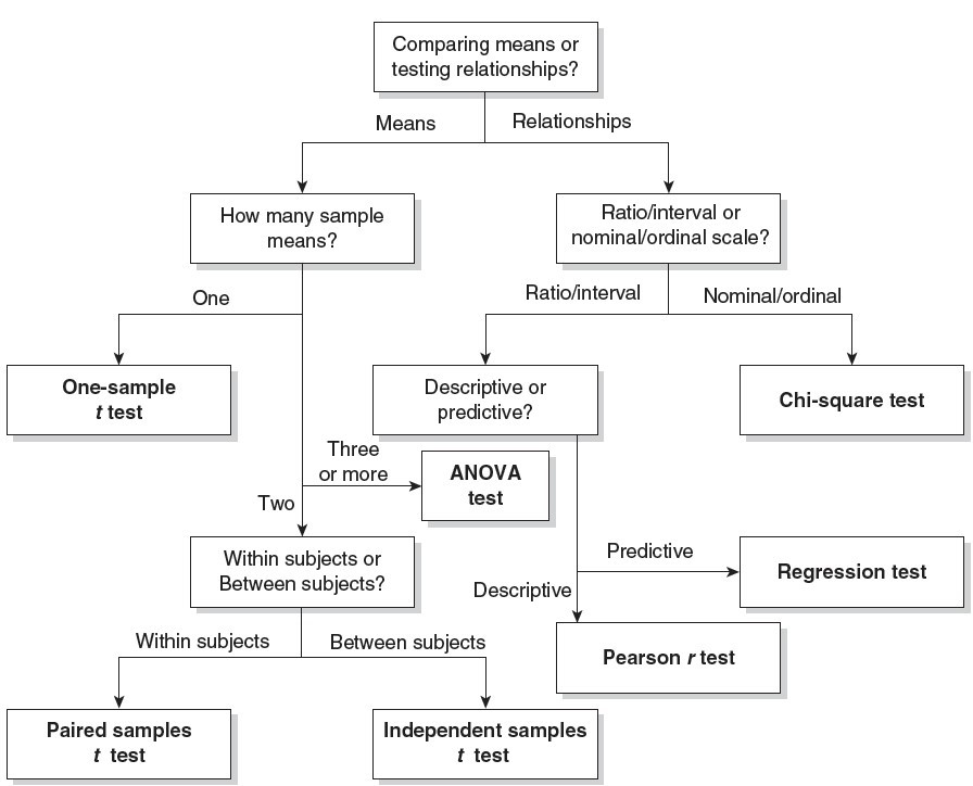 - T test: significance test used to compare means o One sample t test : used when the population mean without a treatment is known and is being compared with a sample mean that represents the population with a treatment
