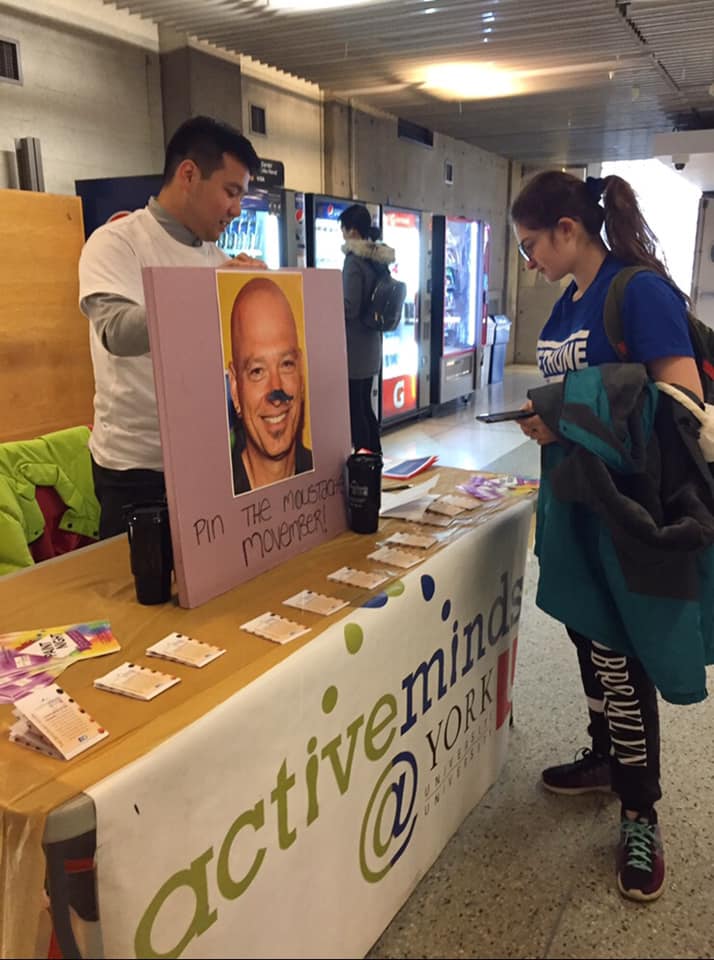 Active Minds@York tables approximately once a week. At our tabling events, executive members and volunteers promote upcoming and ongoing events, and provide students with information about mental health resources. We also recruit interested members and volunteers at these session and play mental health games, such as ‘Toss Yo’ Stress’. Our aim is to engage our fellow York students in a conversation about mental health and to de-stigmatize mental illness and treatments.